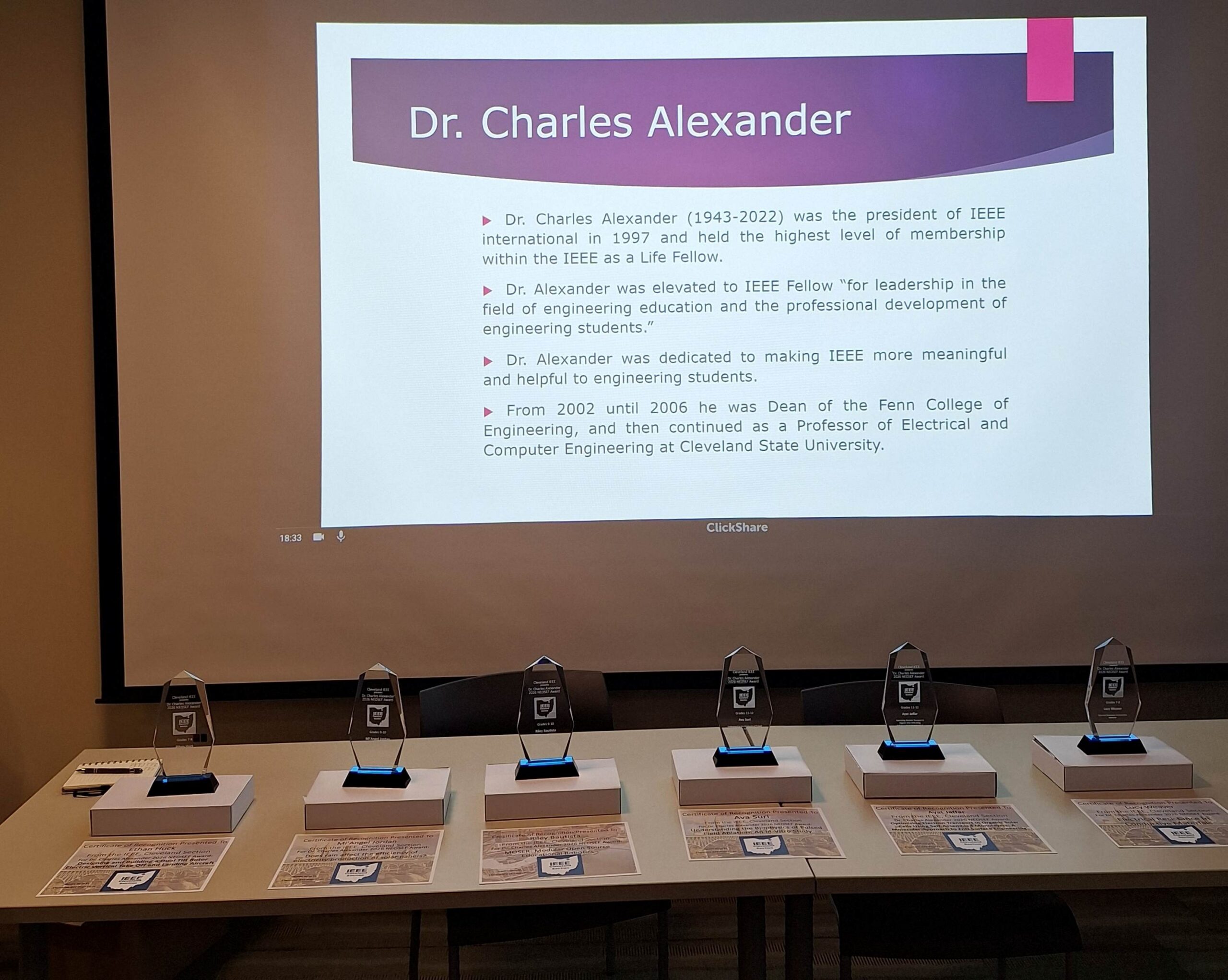 March 31, 2026: Awarding R Bautista, at CLE IEEE 2026 NEOSEF awards dinner